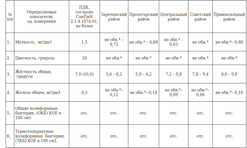 Отметим, что во всех районах в воде специалисты не обнаружили колиформных бактерий.