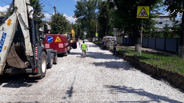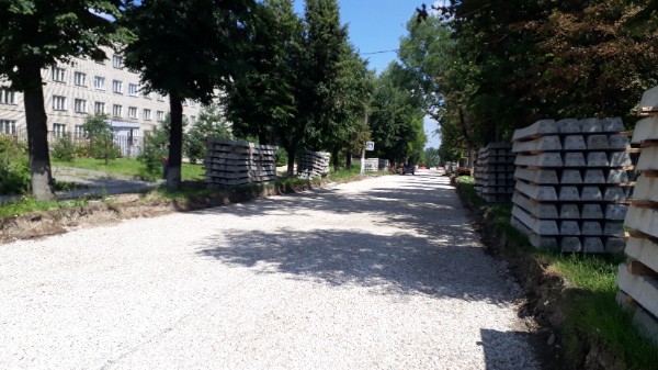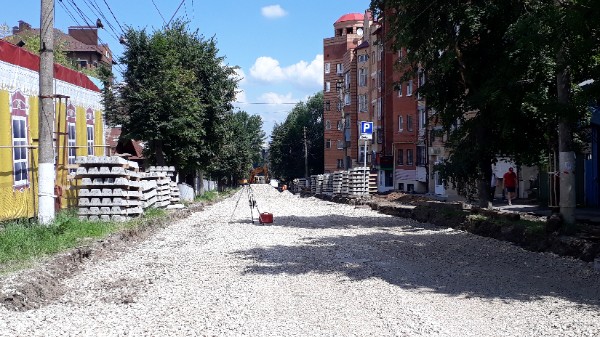 Добрались наши корреспонденты и до участка с пересечением с ул.Гоголевская. Там, на проезжей части возле технико-экономического колледжа покрыли щебёнкой и готовят к следующим работам.