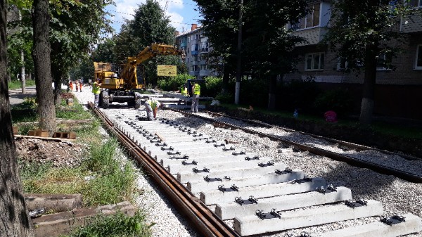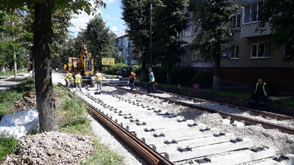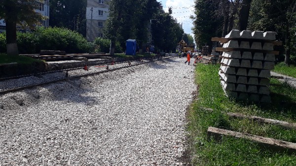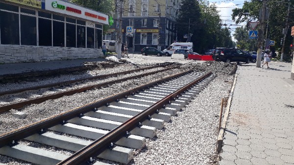 В районе ул. Льва Толстого пока ещё происходит укладка новых рельсошпальных элементов. В скором времени и здесь появятсЯ новые железнодорожные пути для городских травмаев.