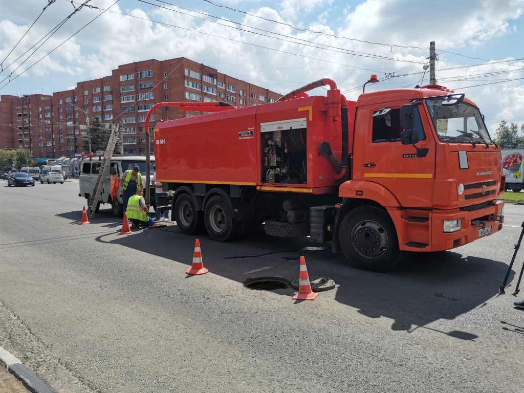 В Туле на Красноармейском проспекте чистят ливневую канализацию