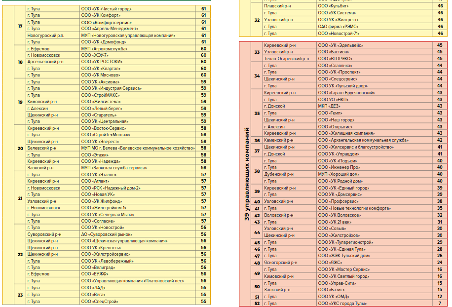Новый рейтинг управляющих компаний Тульской области