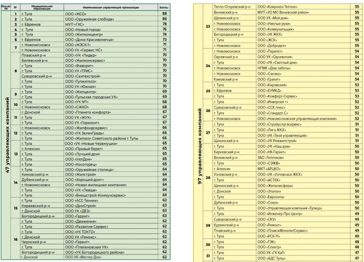 Новый рейтинг управляющих компаний Тулы и области: