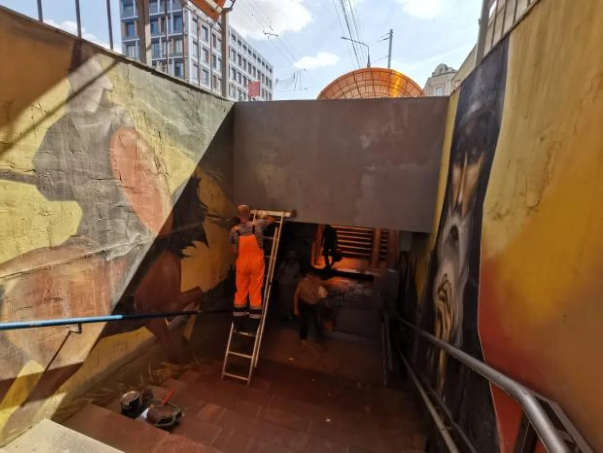 В настоящее время проводится ликвидация дефектов ступеней и парапетов, покраску металлических конструкций навесов, устранение загрязнений стен и потолка.