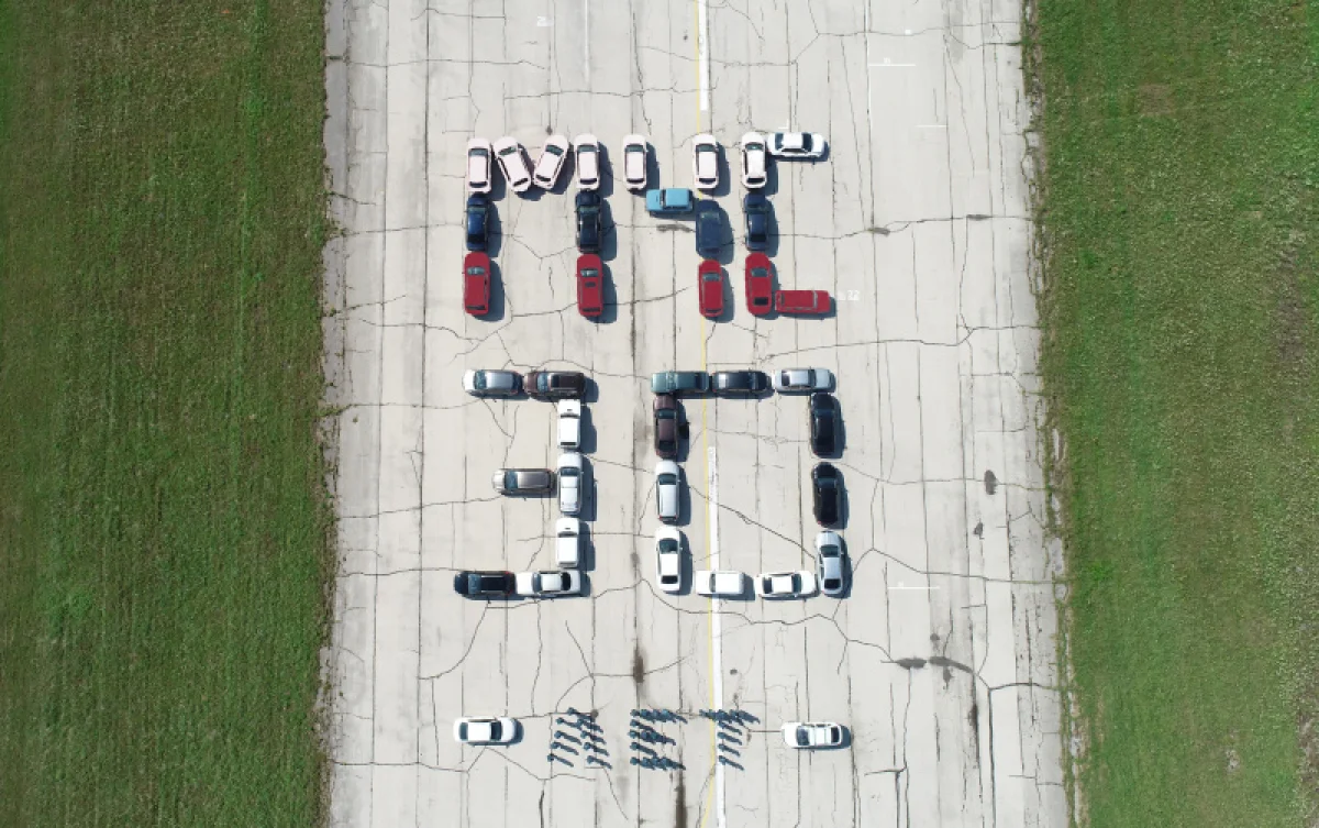 Окрас транспортных срдств был выбран не случайно. Цвета машин символизировали российский триколор — белый, синий, красный. Автомобили спасатели выстроили так, что получилась знаменательная надпись «МЧС — 30 лет».