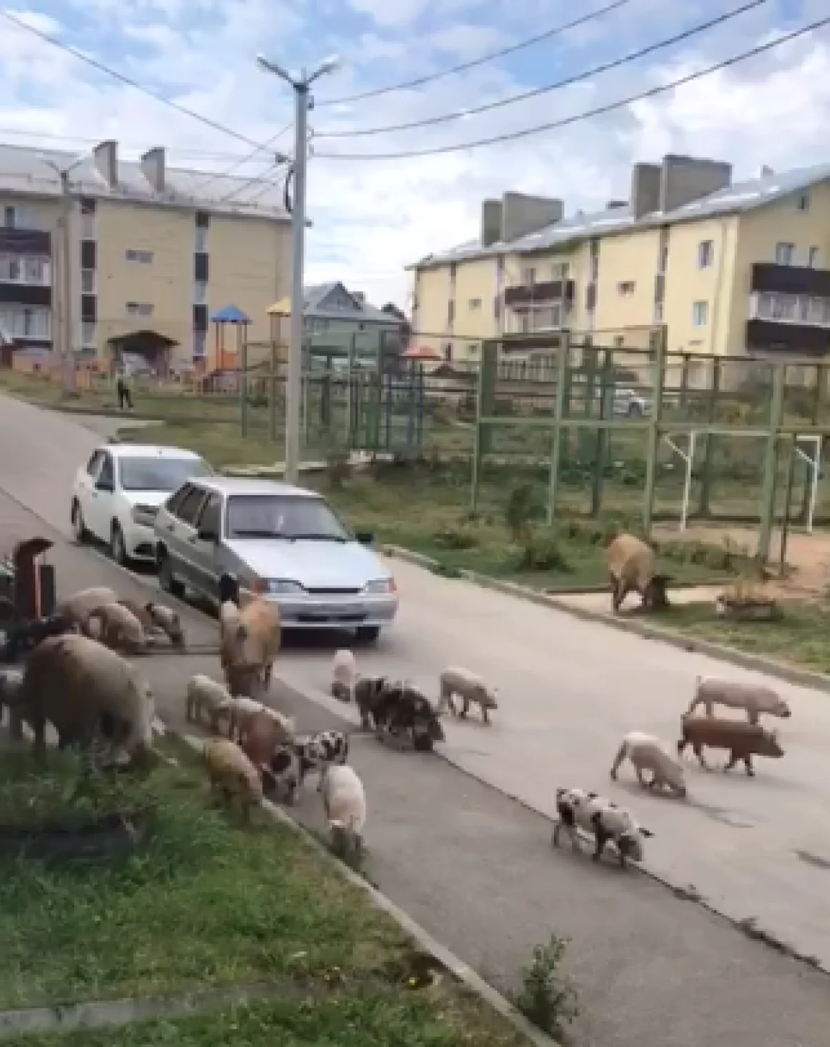 «Пятачки», численностью больше десятка голов, преспокойно шли мимо жилых домов, заходили на тротуар, газоны и в общем-то вели себя вполне непринужденно.