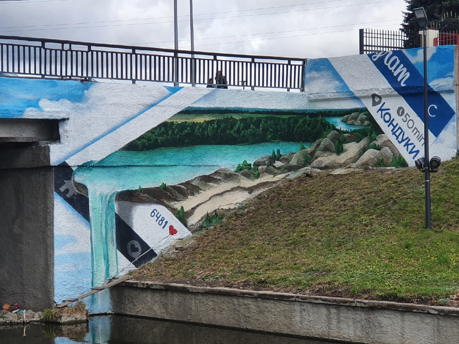 Работа по нанесению граффити на стены моста заняла 6 дней. Для того чтобы граффити получилось красочным, художник не жалел средств: он потратил около 50 кг фасадной краски и 66 баллончиков.