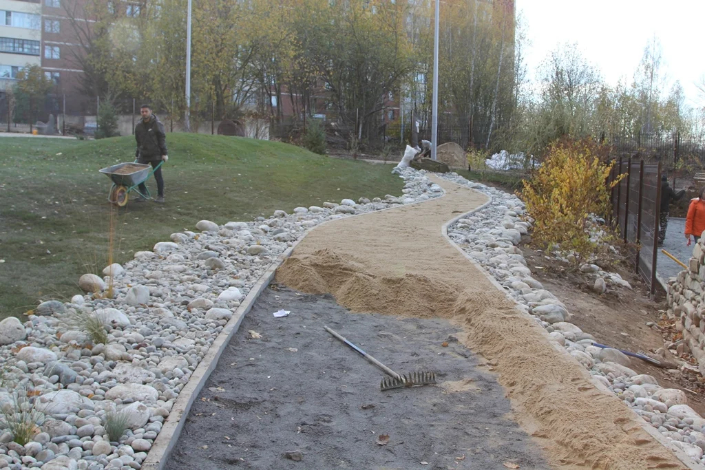 Проект сочетает в себе прогулочную и тренировочную зоны. Их разделит элемент благоустройства — сухая река с песком.