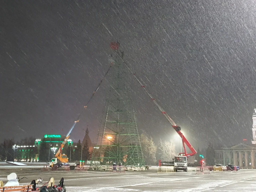 В Туле на площади Ленина устанавливают новогоднюю елку. Монтаж главного символа Нового года начался еще 20 ноября, сейчас уже готов каркас и скоро приступят к самим украшениям.