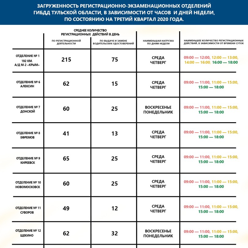 Такая памятка с подробной информацией о загруженности отделений ГИБДД позволит посетителям удобнее спланировать свой визит и подобрать оптимальное время.
