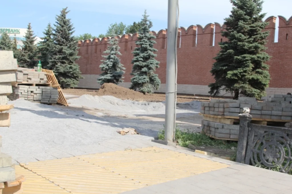 В Туле укладывают тактильную плитку для слабовидящих