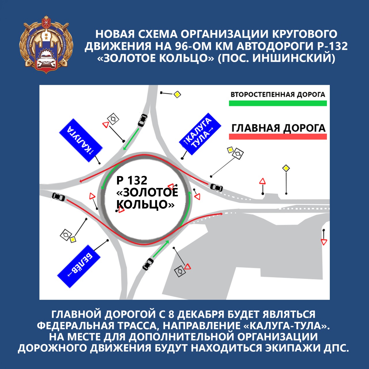 С 8 декабря на 96-м километре (пос. Иншинский) федеральной дороги Р-132 «Золотое кольцо» будет изменена схема кругового движения. Об этом сообщает региональная Госавтоинспекция.