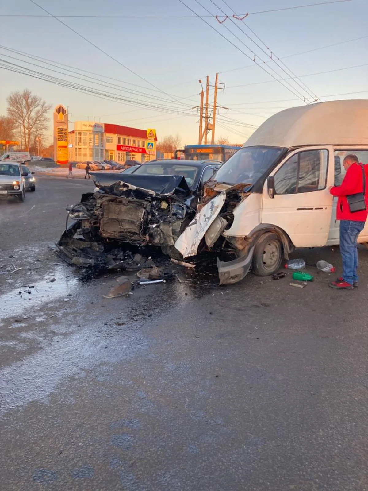 Напомним, авария произошла утром на ул. Октябрьской. На дороги столкнулись иномарка и пассажирский микроавтобус.
