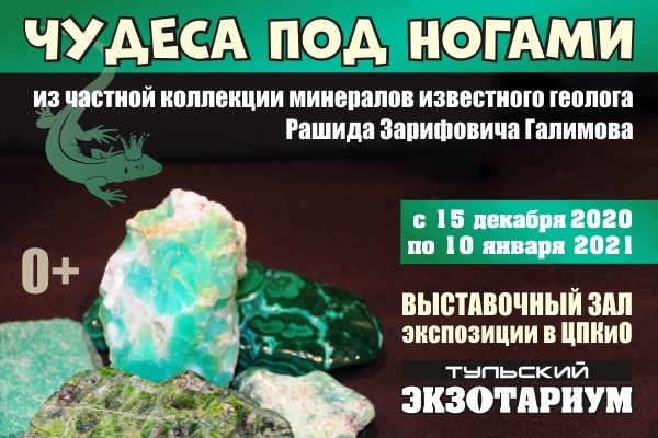 15 декабря в тульском Экзотариуме открывается новая выставка «Чудеса под ногами». На ней гости узнают, как образуется один из самых красивых драгоценный минералов — малахит. Кроме того, посетителям расскажут, с помощью какого минерала можно раздобыть огонь, а какой в огне родился.