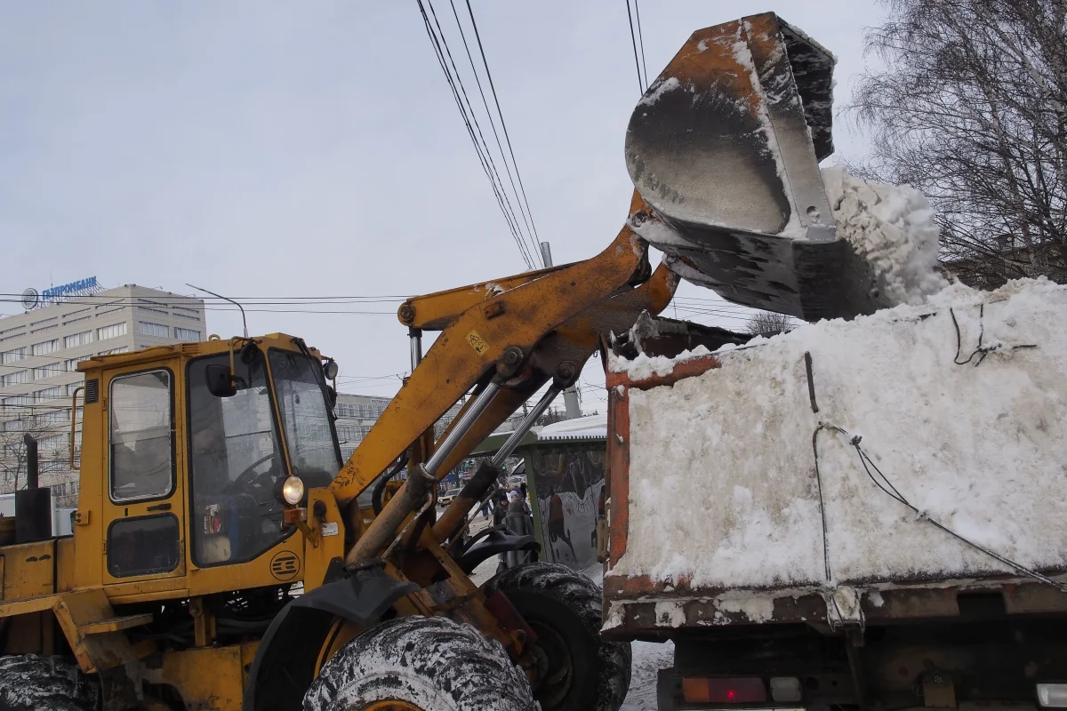 Днем вывоз снега запланирован на ул. Пузакова, ул. Луначарского, ул. М. Горького, пр. Ленина и Востояном путепроводе.