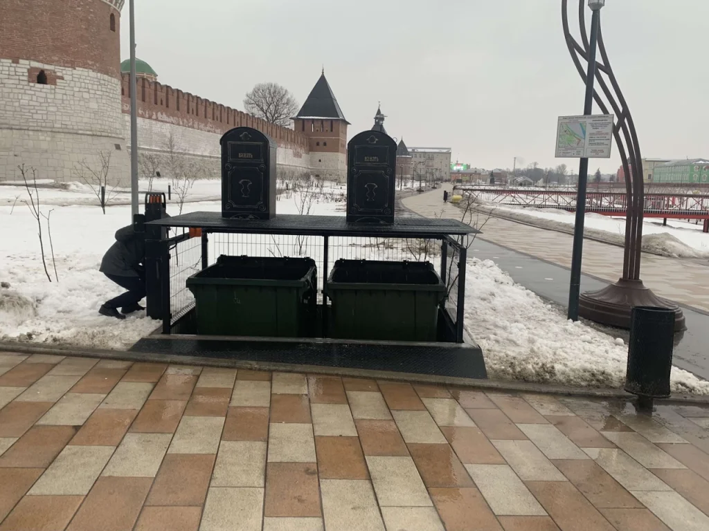 На Казанской набережной установили инновационную мусорную площадку. Контейнеры находятся под землей. Это решение является практичным так как на тротуарах мусорные баки не занимают большого пространства, а так же отходы не беспокоят своим запахом жителей Тулы.