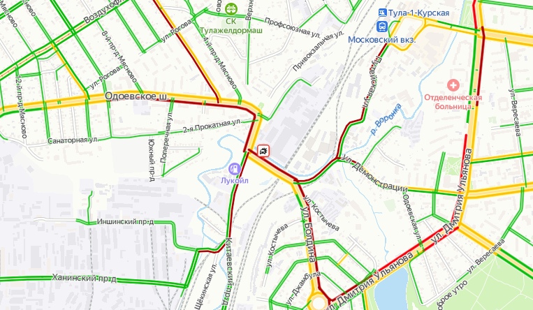 Утром 1 февраля на пересечении улицы Болдина и Одоевского шоссе случилась авария. По предварительным данным, возгорание автомобиля произошло на мосту, в результате чего образовались колоссальные пробки. На место происшествия прибыли спасатели. Обстоятельства случившегося выясняются.