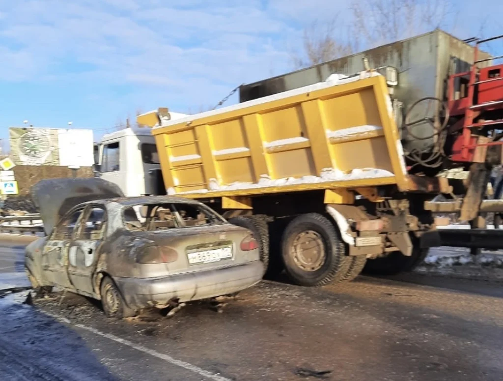 Авария на Болдина в Туле: сгорел автомобиль