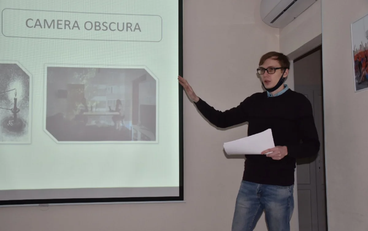 Лекция проходила в Общественном ресурсном центре Тулы. Слушателями выступили ученики колледжей города, а так же волонтеры. Спикером был фотограф Евгений Толкачев, чьи работы пользуются популярностью в социальных сетях. Он рассказал как создавалось фотоискусство, о его распространении, техническом прогрессе и открытиях.