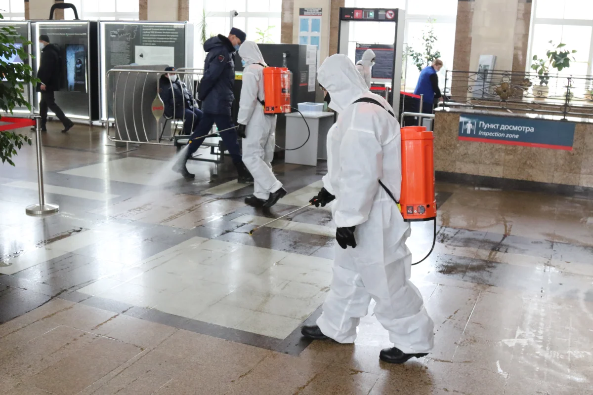 МЧС провели дезинфекцию Московского вокзала в Туле: предупреждение коронавируса продолжается