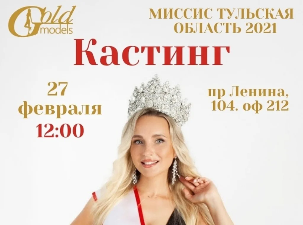 ОФИЦИАЛЬНОЕ ПРЕДСТАВИТЕЛЬСТВО ВСЕРОССИЙСКОГО КОНКУРСА КРАСОТЫ "МИССИС РОССИЯ - ВСЕЛЕННАЯ" В ТУЛЕ МОДЕЛЬНОЕ АГЕНТСТВО GOLD MODELS ПРИГЛАШАЕТ НА КАСТИНГ ОБЛАСТНОГО КОНКУРСА КРАСОТЫ И ГРАЦИИ " МИССИС ТУЛЬСКАЯ ОБЛАСТЬ " 2021