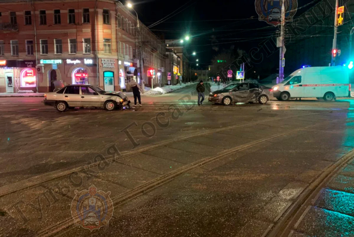 Ночью 23 февраля на улице Советской произошло столкновение автомобилей "Kia Rio" и "Daewoo Nexia".