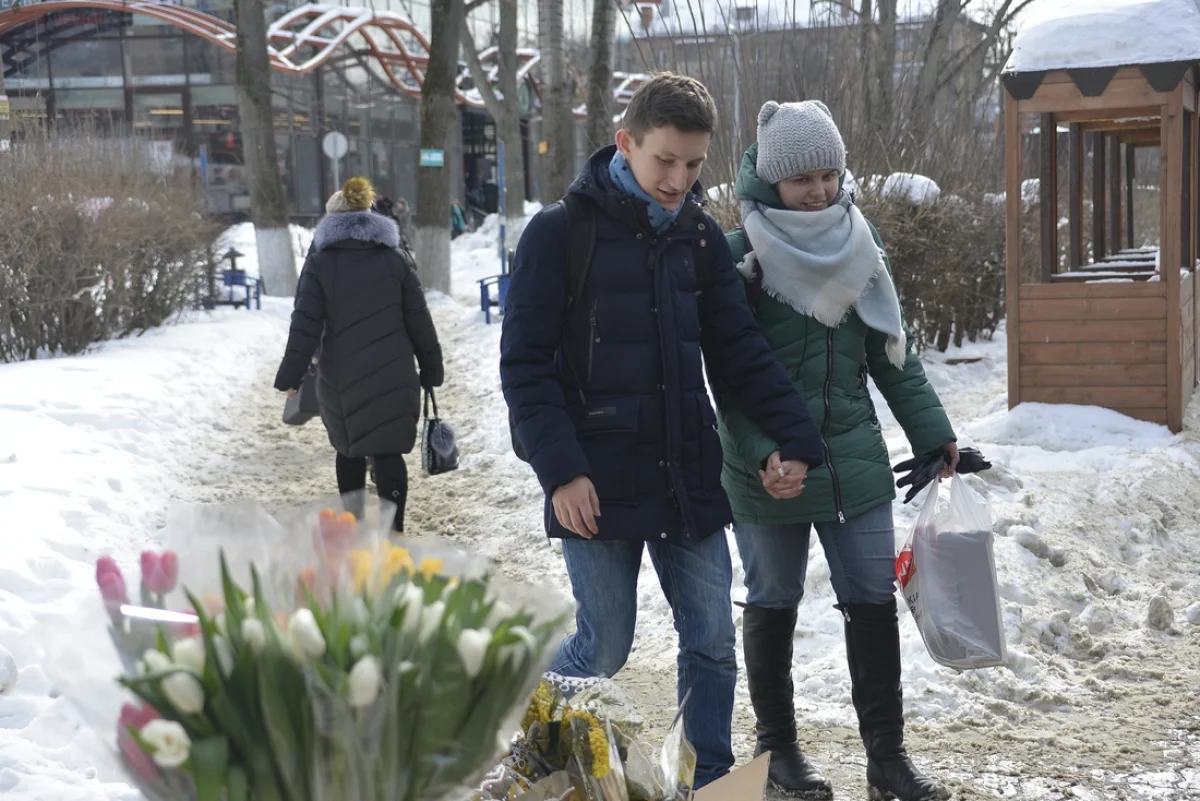 Представительницам прекрасного пола вручили не только цветы, но и защитные маски. Таким образом удалось не только