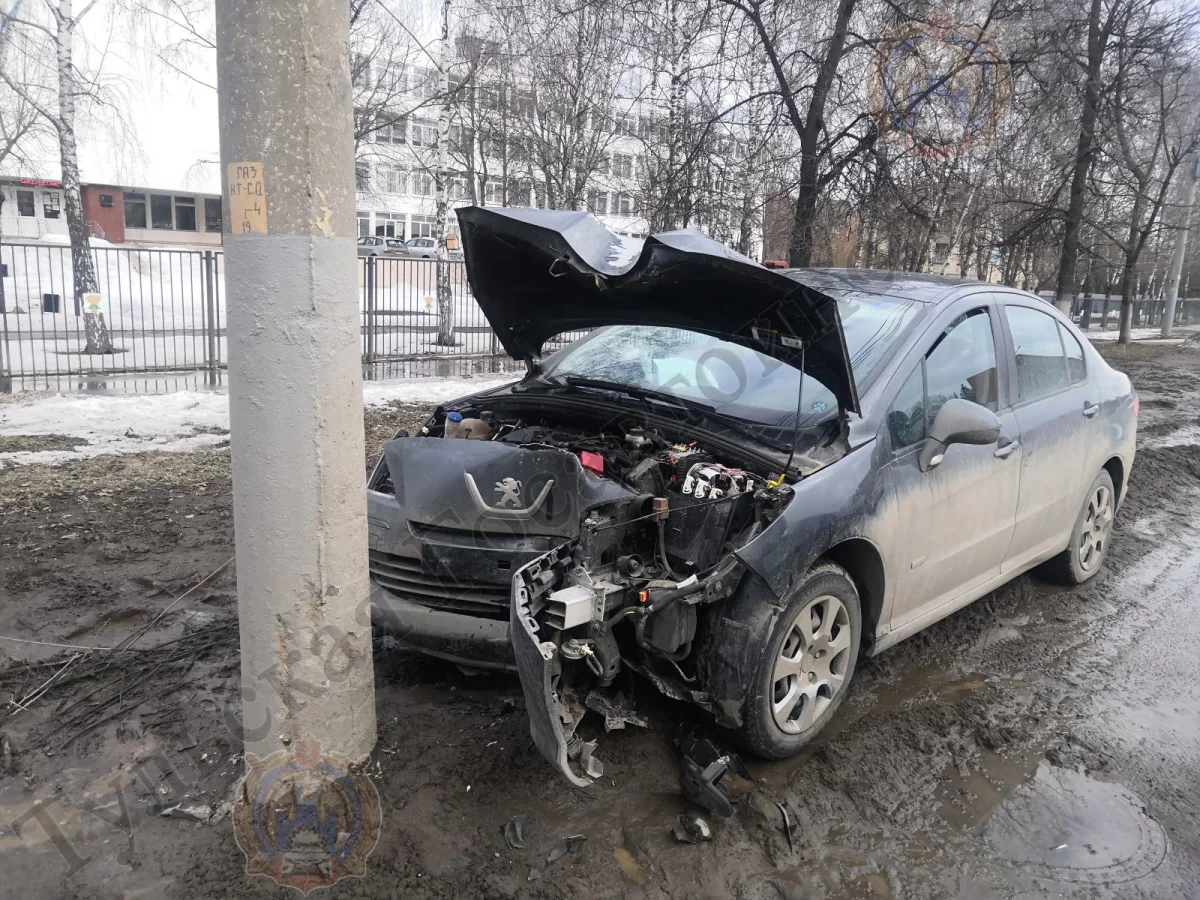 На ул. Оборонной в Туле мужчина на Peugeot въехал в столб