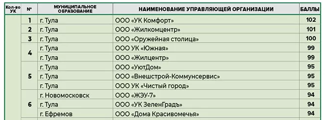 А в первую десятку (точнее, в первые 11) лучших, набравших от 94 до 102 баллов, вошли как тульские компании, так и две областных - из Новомосковска и Ефремова.