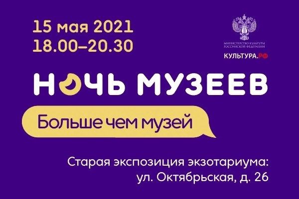 Тульский экзотариум в рамках «Ночи в музее» приглашает на интерактивное мероприятие в старой экспозиции музея (Тула, ул. Октябрьская, 26).