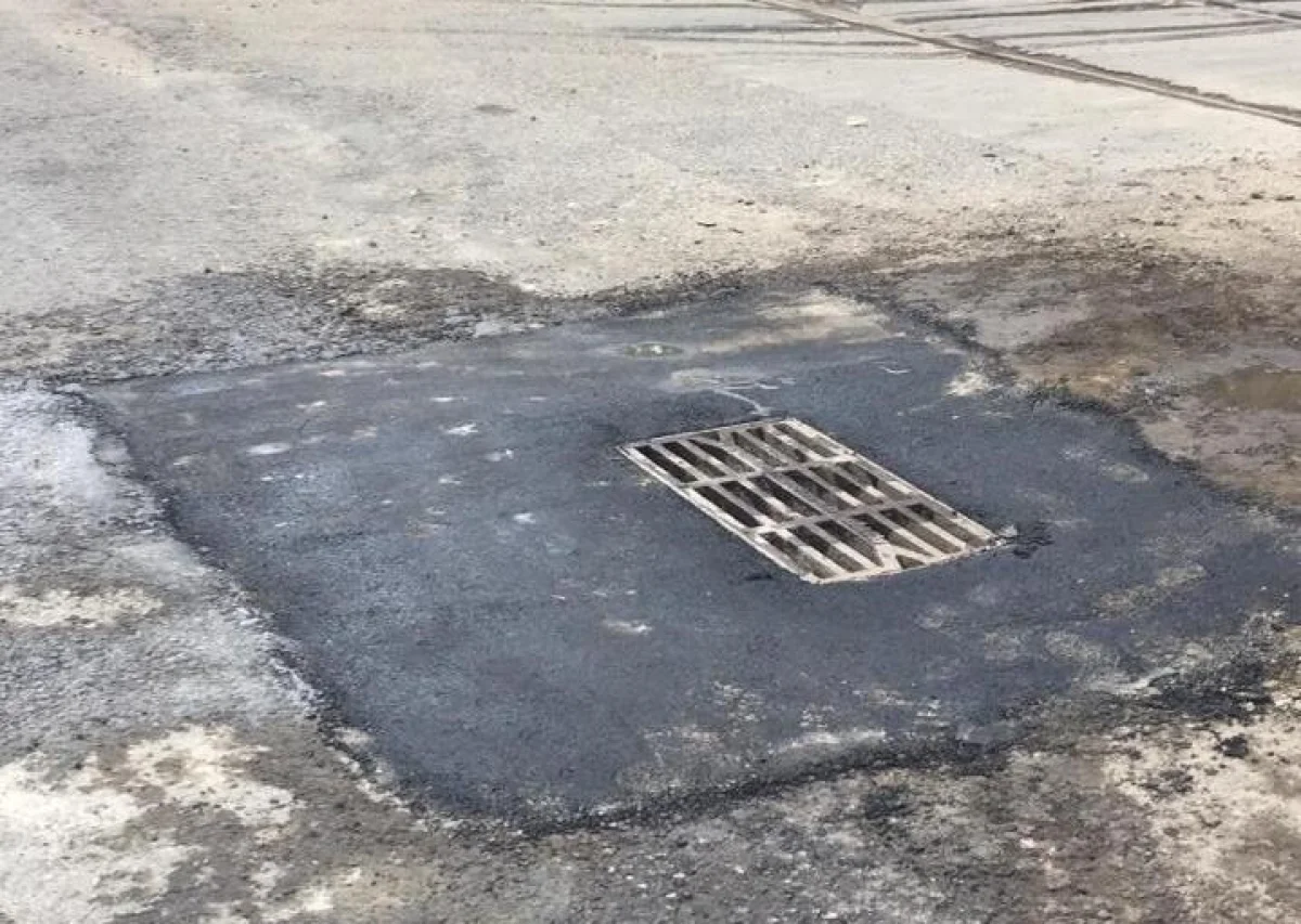 Представители дорожной службы убрали обломки и поставили асфальтовую «заплатку».