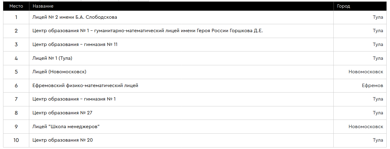 составил журнал RAEX. В результате в рейтинг попали семь тульских, две новомосковских и одна ефремовская школы: