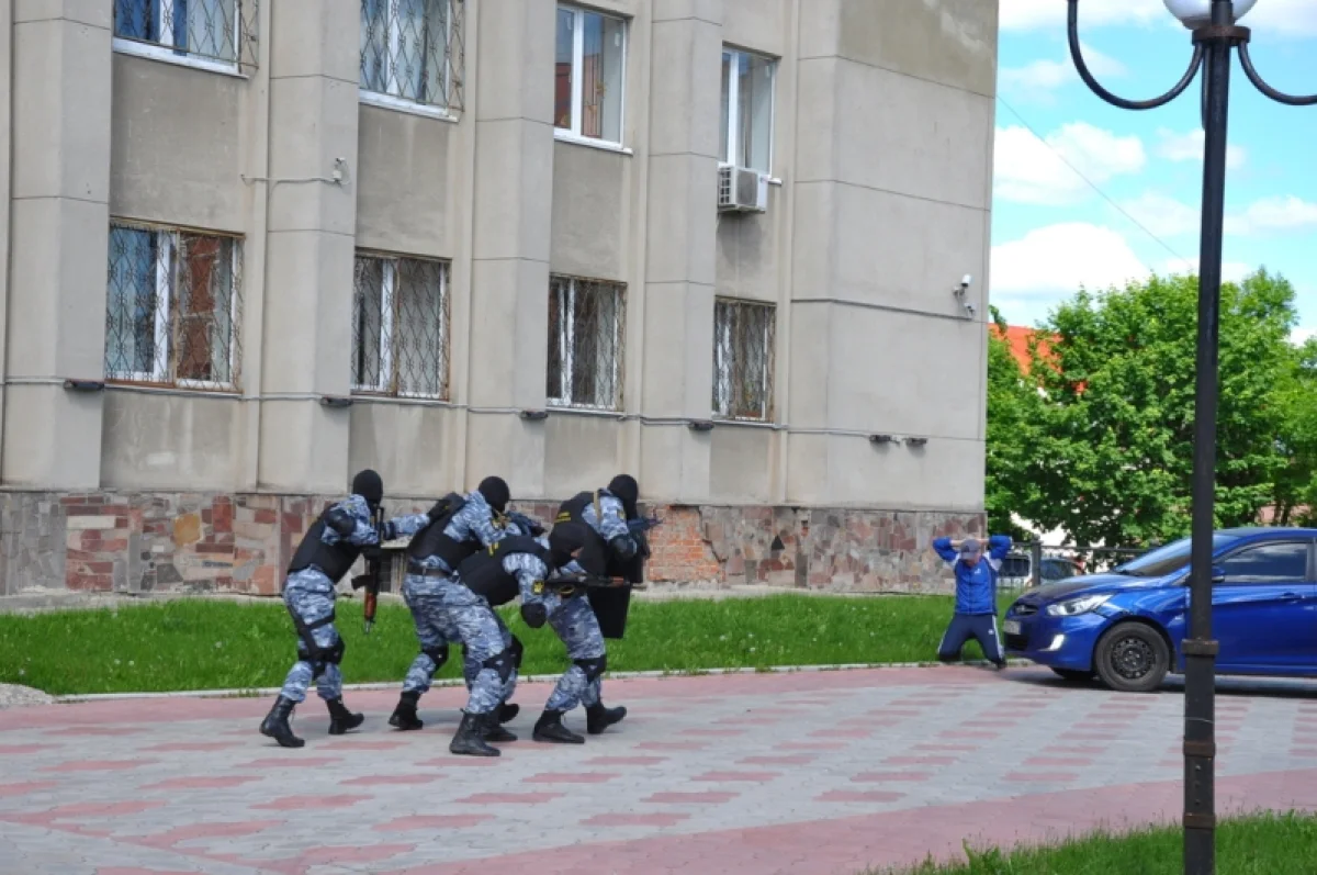 Так, в рамках тренировки, провели эвакуацию людей и проверку здания, когда «поступила» информация о заложенном взрывном устройстве. Также отработали действия в случае поступления информации о возможной провокации: по легенде, в отношении «лидера преступной группировки» планировалось оглашение приговора. Дежурную смену суда усилили сотрудниками спецназа, на которых произошло «вооруженное нападение» с огнестрельным и холодным оружием. Нападавших обезвредили.