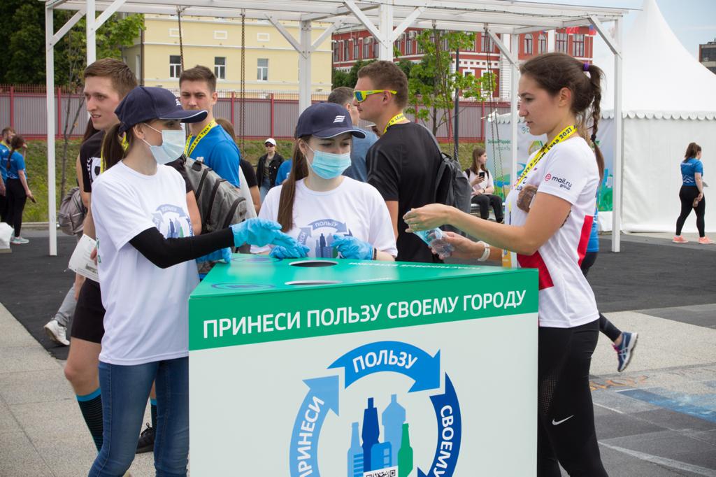 Участники экомарафона «Реки бегут» сдавали пластиковые бутылки и алюминиевые банки на трех точках сбора отходов упаковки «Принеси пользу своему городу» в стартово-финишном городке и в зоне музыкальной поддержки у фонтана, а также пообщались с волонтерами и узнали много полезного о сортировке отходов: куда можно сдать вторсырье, с чего начать раздельный сбор, какие здоровые привычки помогут сделать жизнь чище и экологичнее, что происходит с упаковкой после сдачи и какие новые вещи делают, используя вторичные материалы. Все собранные бутылки были переданы на сортировочную станцию для дальнейшей отправки на переработку.