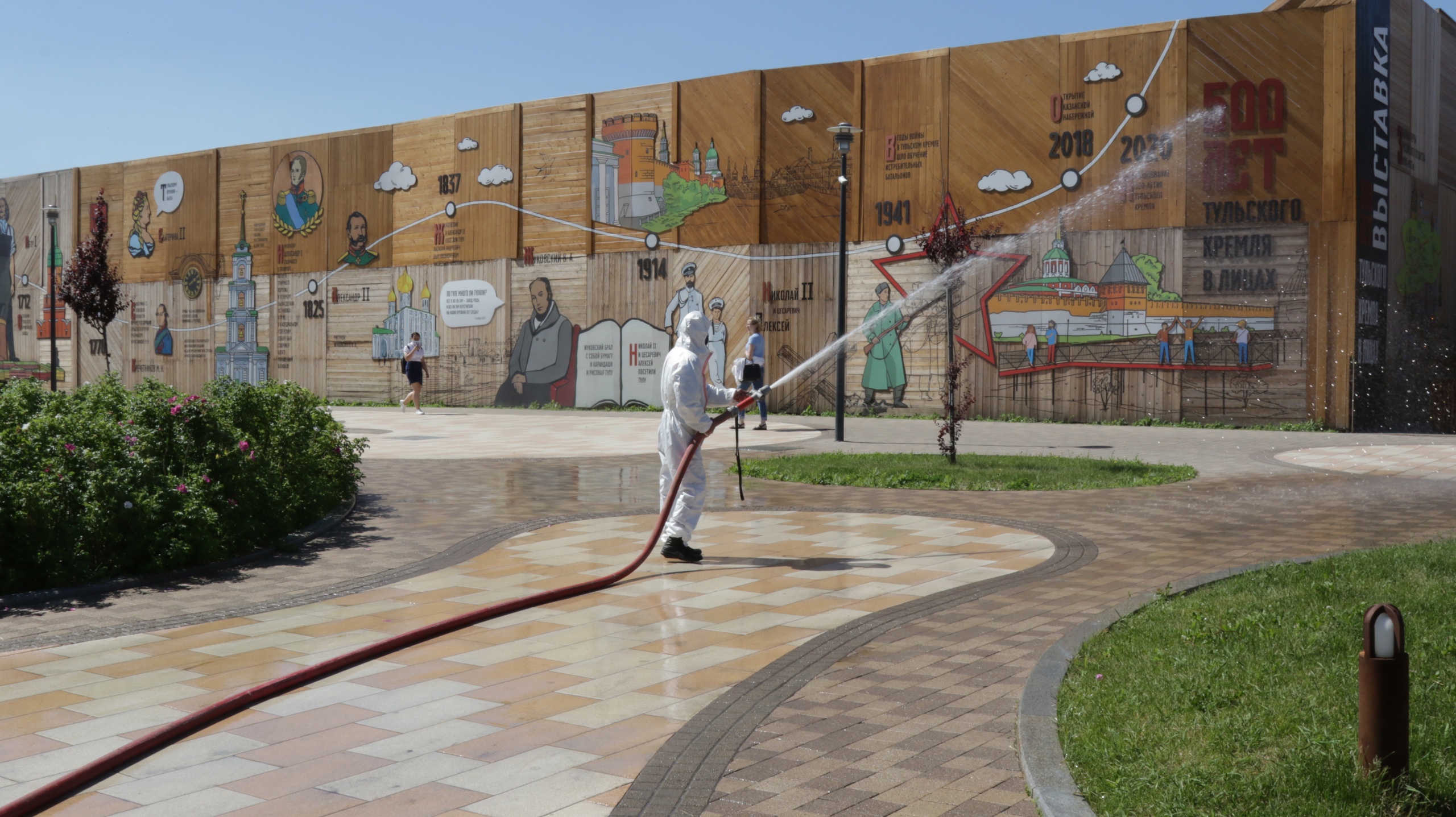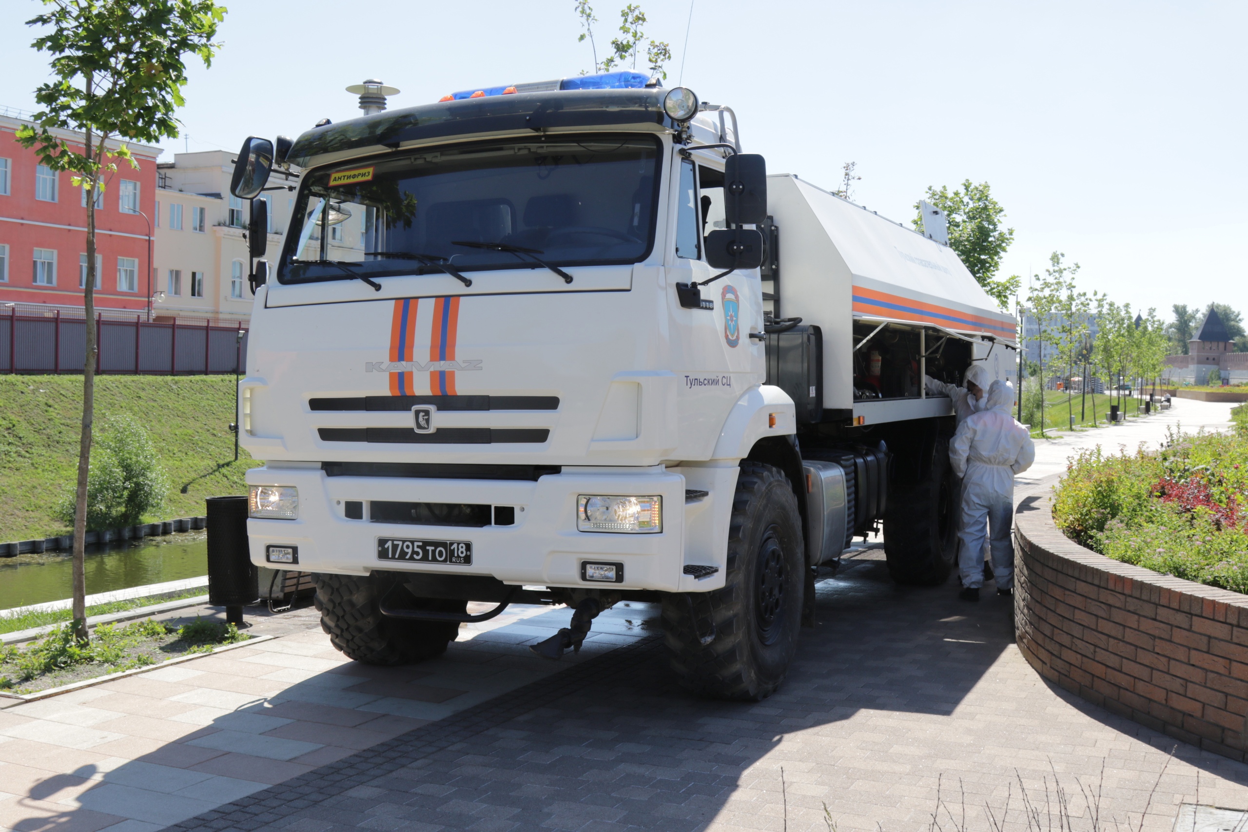Сотрудники тульского МЧС продезинфицировали Казанскую набережную