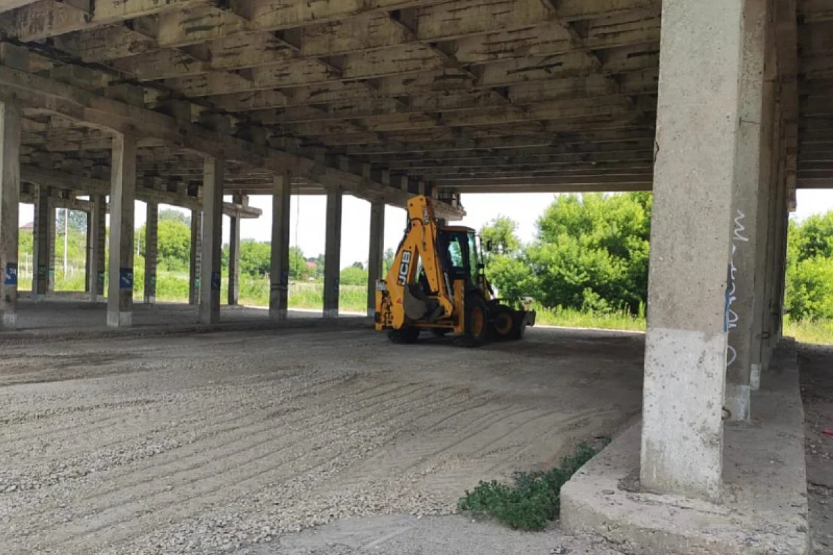 На Московском путепроводе начались подготовительные работы, которые ведет подрядная организация в рамках заключенного контракта. Сейчас там распланируют территорию для укладки железобетонных плит. А за подготовительными работами начнется устранение критических дефектов несущих конструкций.