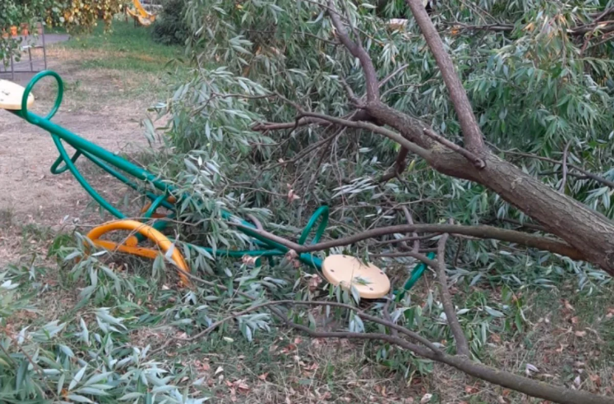 В соцсетях туляк поделился фотографиями, которые сделал во дворе дома № 19 по улице Бондаренко в Туле. По словам очевидца, 10 июля, в середине дня, на детскую площадку в этом дворе упало дерево, которое было старым и трухлявым. К счастью, детей успели убрать из-под «удара», но еще сутки дерево пролежало на площадке, полностью игнорируемое управляющей компанией.
