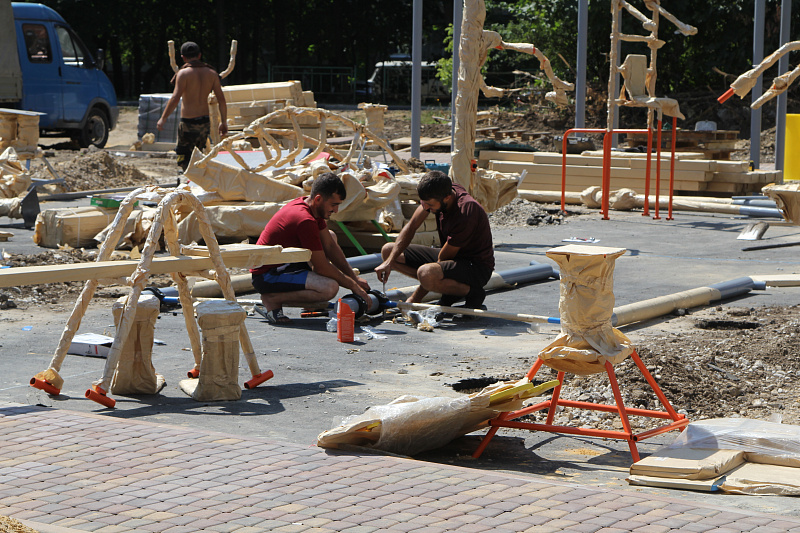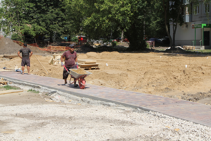 Здесь устанавливают спортивное оборудование, укладывают тротуарную плитку на дорожках, подготавливают основание под детскую площадку. Кроме того, планируется, что здесь будут детские и спортивные площадки, освещение, парковочные карманы, пешеходные дорожки, скамейки и урны.