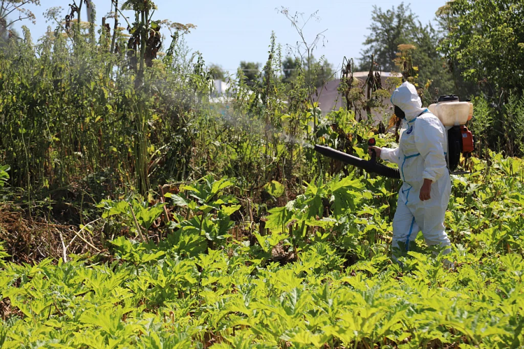 В Туле продолжается борьба с зарослями борщевика Сосновского. Обработку, так назваемое гашение борщевика, проводят специальным раствором, при этом другие растения, растущие в непосредственной близости, не страдают. Гербицид, который используют для этого разрешен к применению на территории Российской Федерации.
