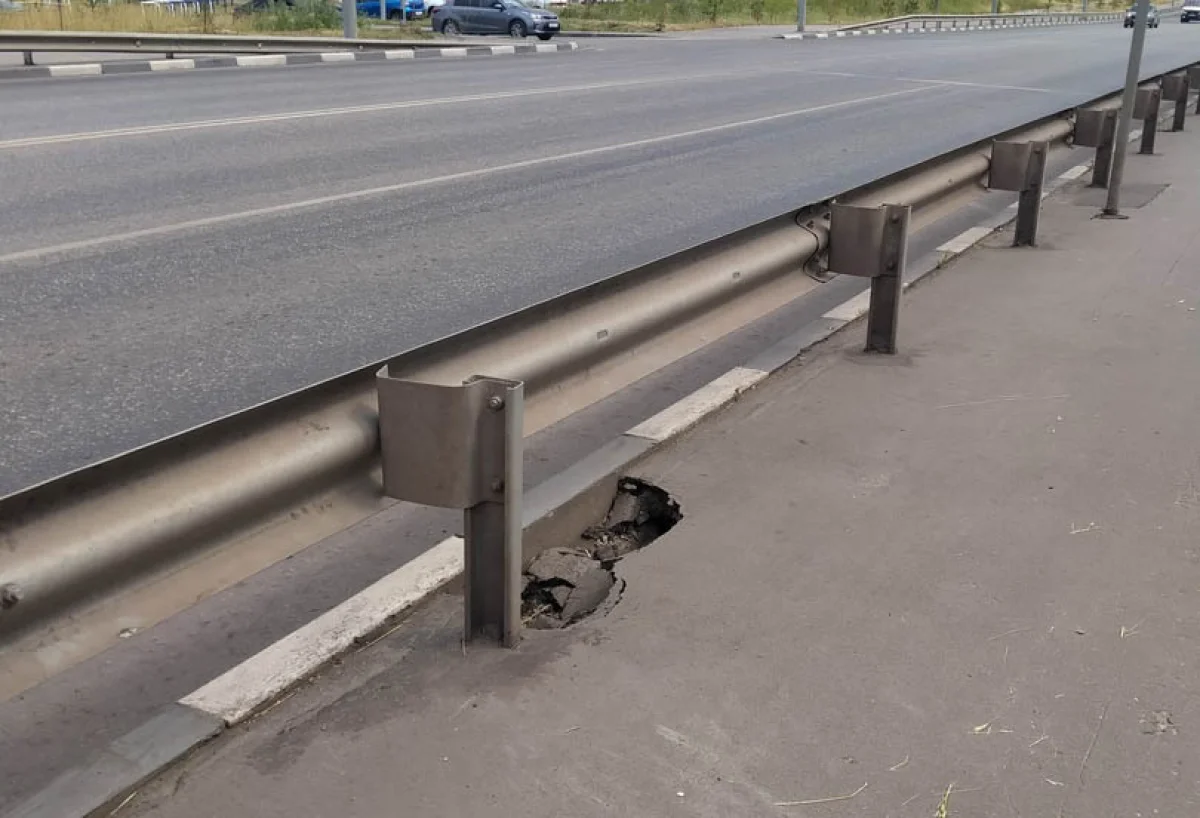 Самый большой провал был практически сразу после ввода в строй автодороги, потом не раз регистрировались другие, локальные. Причиной назывался размыв почвы — участок там и впрямь с гидротехнической точки зрения непростой — множество ключей. Но на этот раз, когда на улице стоит такая засуха, вряд ли асфальт стал уплывать из-за этого.