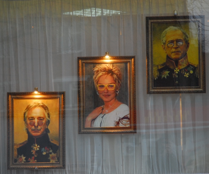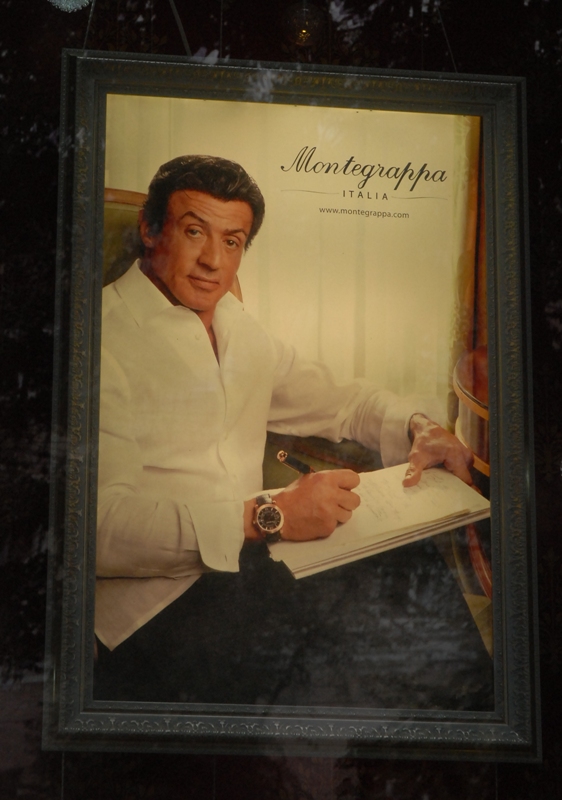 С виду кажется, статный Рембо дает кому-то автогроф и его за этим делом фотографируют. Хотя, возможно, он рекламирует часы и ручку. Этимология размещения портрета Сталлоне на витрине магазина сувениров (проспект Ленина) осталась для нас загадкой.