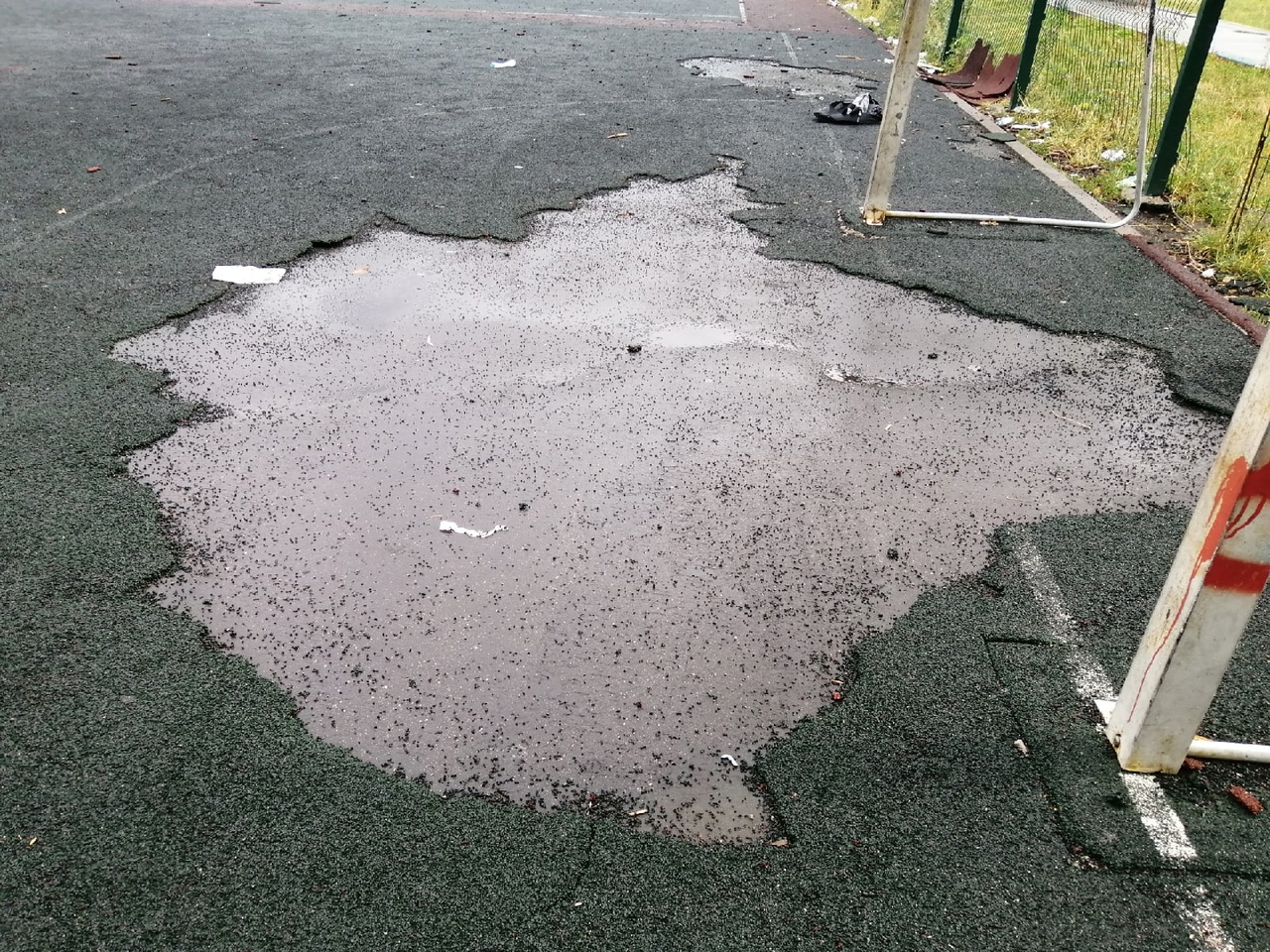 В любом случае, состояние площадки действительно плачевное, и требует вмешательства до того, как кто-то из детей получит травмы посерьезнее ссадин.