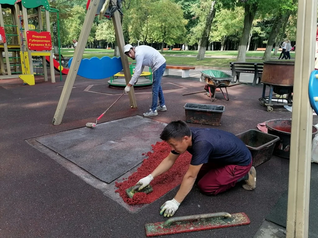 В тульских парках закрыли детские площадки: идет ремонт безопасного покрытия
