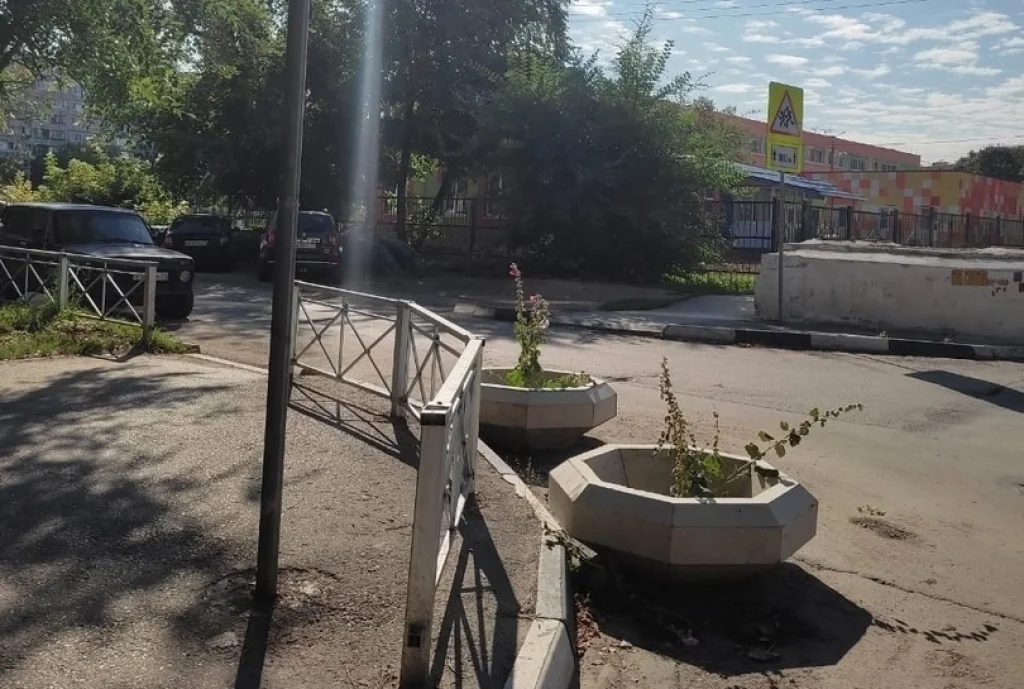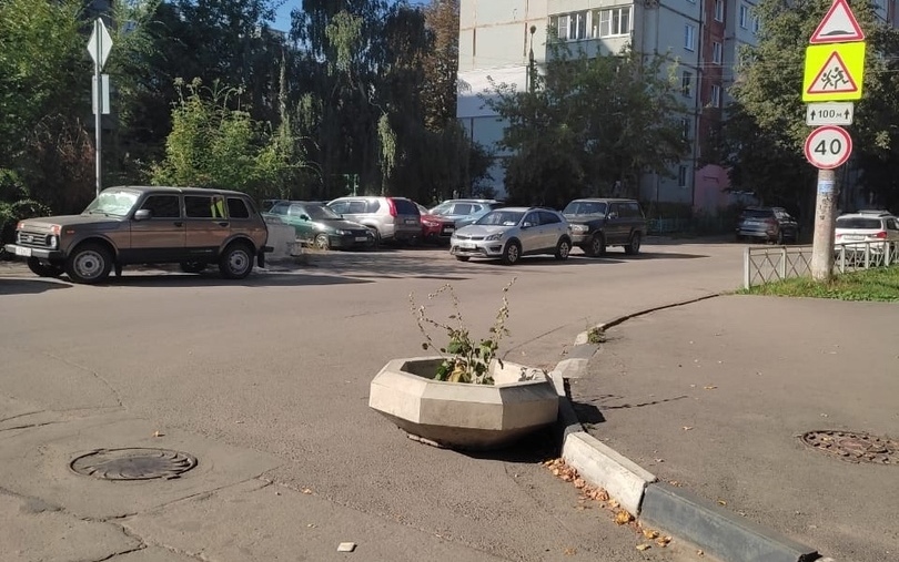 Цветочные вазоны на проезжей части поставили в Советском районе Тулы