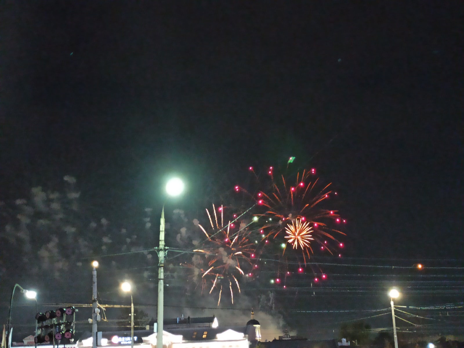 Традиционно, фейерверки запускали с двух точек, и туляки могли насладиться огненным шоу с площади Ленина, территории Тульского кремля, Пролетарской набережной и площадки перед ГКЗ.