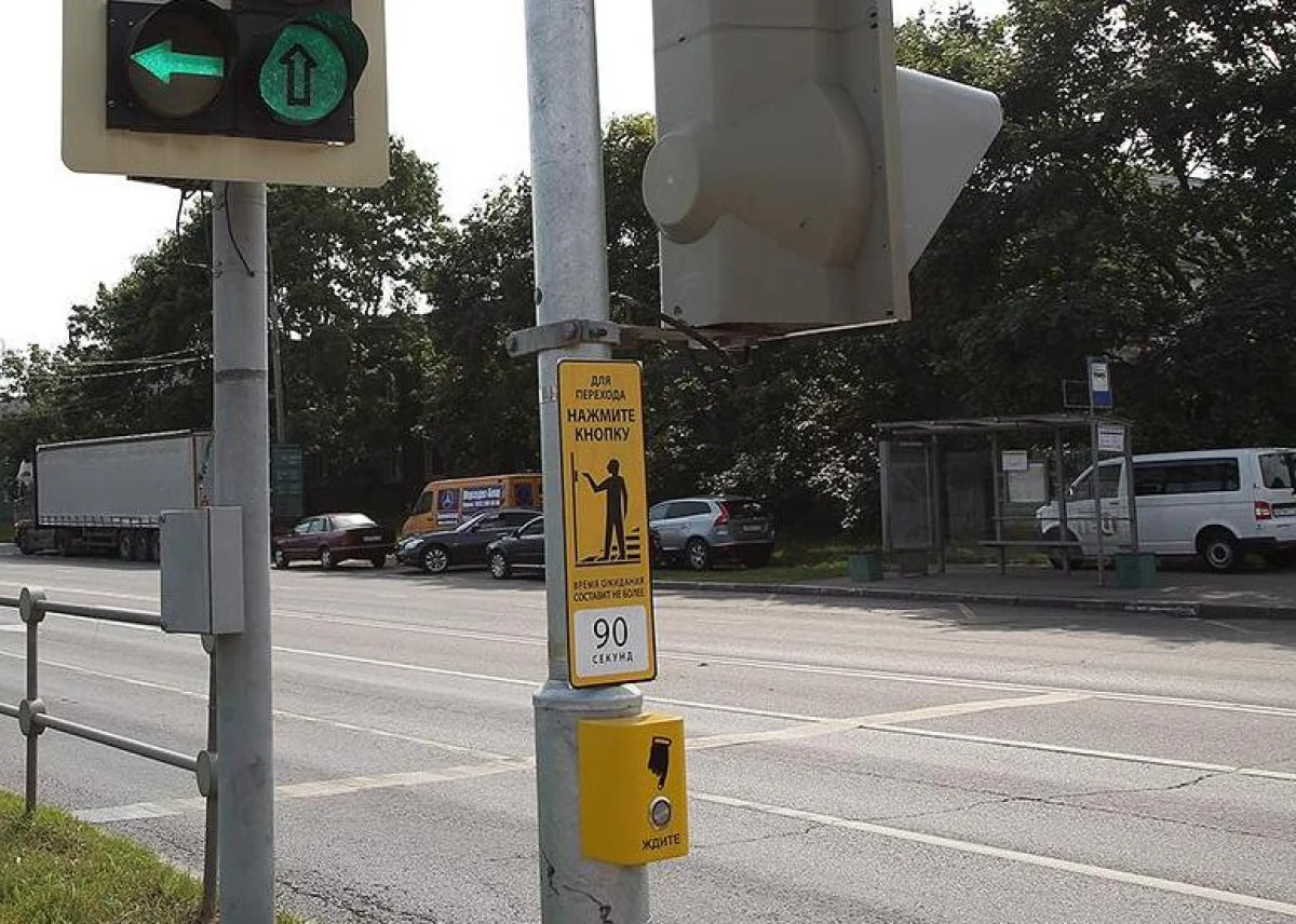 С 27 сентября на этом светофоре пешеходная фаза вызывается с помощью кнопки, расположенной на стойке светофора. После нажатия пешеходу необходимо дождаться сигнала, разрешающего переход, и перейти проезжую часть.