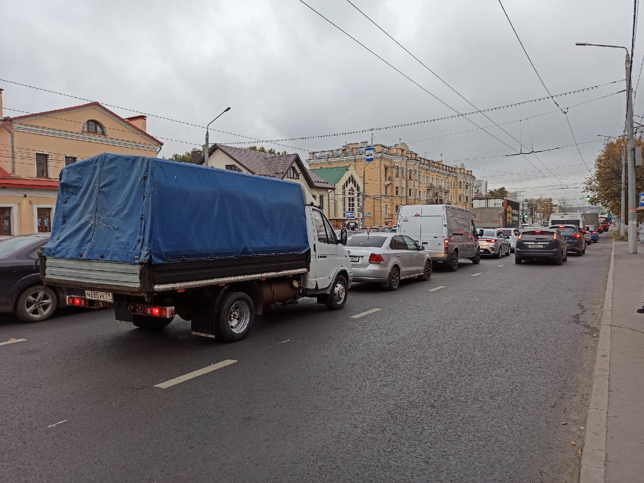 На 8:40 утра пробка в три остановки собралась на улице Октябрьской. Также от самих заводов стоит и Советская.