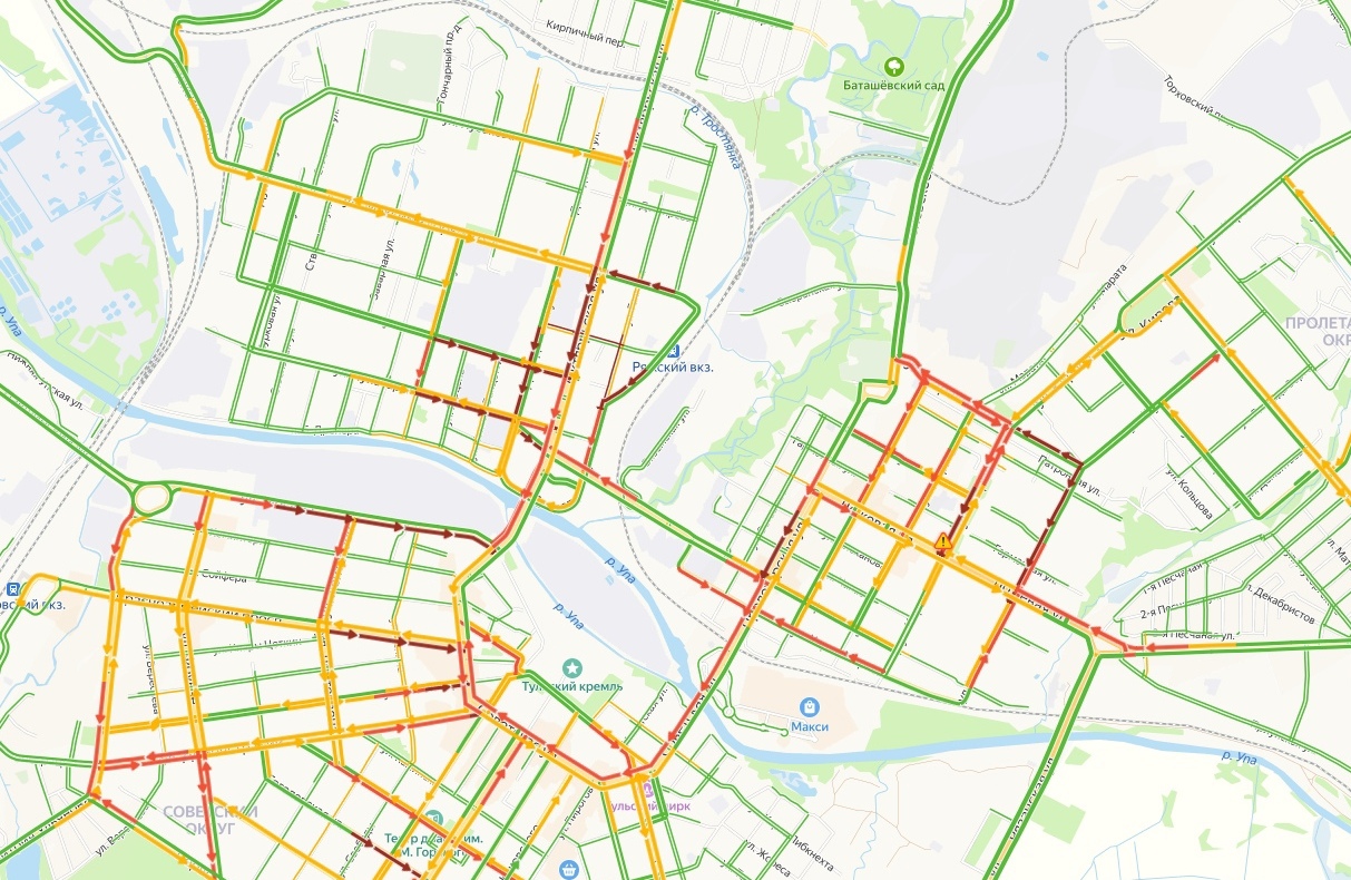 Cейчас по данным Яндекс.Карты затруднение движения наблюдается по всем ключевым улицам города. Выбирайте пути объезда.