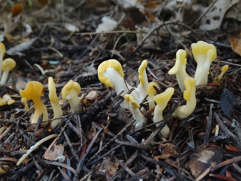 Спатулярия желтоватая (Spatularia flavida), также известная как грибная лопаточка, жёлтая лопаточка и даже булавовидный шпатель, получила свои названия за плоскую форму грибного тела. Широко широко распространена в хвойных лесах, где образует целые колонии и "ведьмины круги". Встречается во второй половине лета и начале осени. Это грибы с плоской шляпкой, около 5 см в высоту. В еду спатулярию лучше не употреблять.