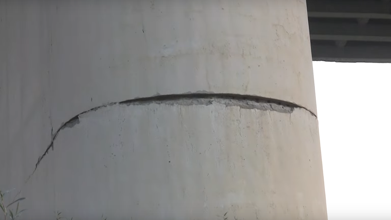 Жительи Тульской области бьют тревогу: опоры моста через Оку, стоящего в пределах региона, пошли трещинами. Очевидцы сообщили об этом в соцсетях, также этому посвятили часть обзорного ролика на ютьюб-канале Алексина.