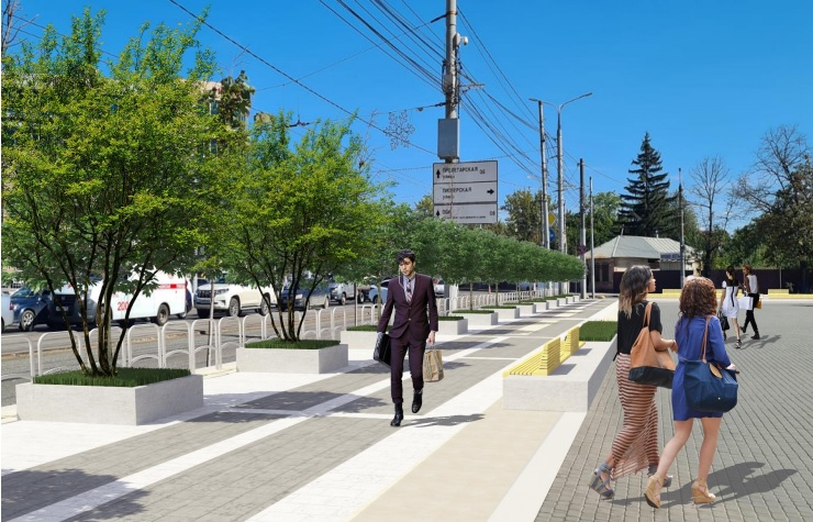 Им стал проект компании «Нобили», основная идея концепции — уйти от плоскостного озеленения. Согласно проекту, на проспекте установя бетонные модули с вазонами и лавочками, которые позволят создать многоуровневую систему, а также вернут на главную улицу города крупномерные деревья — их привезут сразу в возрасте 25-30 лет, высота саженцев планируется 5 метров с обхватом ствола 25-30 сантиметров. Основными породами станут липа и клён остролистный, так как они входят в число самых устойчивых к городским условиям. Также посадят кустарники и цветы.